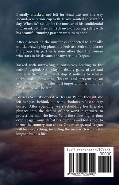 Brutally attacked and left for dead was not the way second-generation cop Seth Dixon wanted to start his day. When he's set up for the murder of his confidential informant, Seth figures his chances of scoring a date with his beautiful running partner are slim to none. After discovering the murder is connected to a deadly militia brewing big plans, the Feds ask Seth to infiltrate the group. His partner is none other than the woman who stars in his dreams, the mysterious Teagan. Tasked with unraveling a conspiracy leading to the nation's capital, Seth plays a deadly game of cat and mouse with men who will stop at nothing to achieve their goals. Protecting Teagan and preventing an assassination become the most important missions of his life. Failure will be fatal. Fortress Security operative Teagan Paloni thought she left the past behind, but some shadows refuse to stay buried. After spending years rebuilding her life, she plunges into the depths of her worst nightmare to protect the man she loves. With the stakes higher than ever, Teagan must defeat her demons and foil a plot to throw the country into chaos. One misstep, and Teagan will lose everything, including the man with whom she longs to build a life.