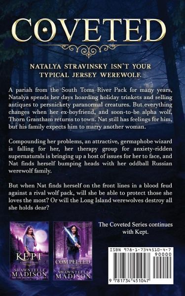 Natalya Stravinsky isn't your typical Jersey werewolf. A pariah from the South Toms River Pack for many years, Natalya spends her days hoarding holiday trinkets and selling antiques to persnickety paranormal creatures. But everything changes when her ex-boyfriend, and soon-to-be alpha wolf, Thorn Grantham returns to town. Nat still has feelings for him, but his family expects him to marry another woman. Compounding her problems, an attractive, germaphobe wizard is falling for her, her therapy group for anxiety-ridden supernaturals is bringing up a host of issues for her to face, and Nat finds herself bumping heads with her oddball Russian werewolf family. But when Nat finds herself on the front lines in a blood feud against a rival wolf pack, will she be able to protect those she loves the most? Or will the Long Island werewolves destroy all she holds dear?
