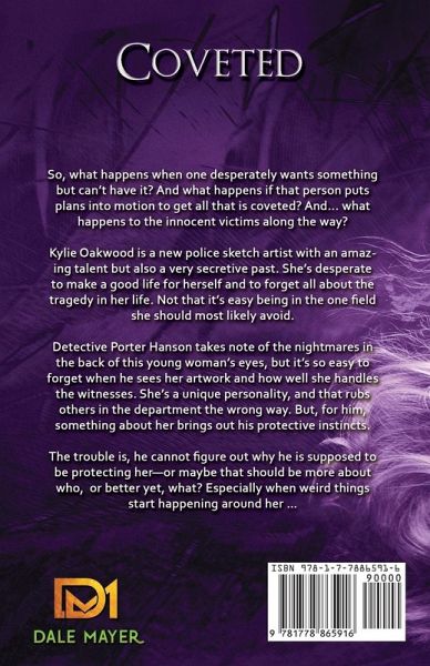 So, what happens when one desperately wants something but can't have it? And what happens if that person puts plans into motion to get all that is coveted? And... what happens to the innocent victims along the way? Kylie Oakwood is a new police sketch artist with an amazing talent but also a very secretive past. She's desperate to make a good life for herself and to forget all about the tragedy in her life. Not that it's easy being in the one field she should most likely avoid. Detective Porter Hanson takes note of the nightmares in the back of this young woman's eyes, but it's so easy to forget when he sees her artwork and how well she handles the witnesses. She's a unique personality, and that rubs others in the department the wrong way. But, for him, something about her brings out his protective instincts. The trouble is, he cannot figure out why he is supposed to be protecting her-or maybe that should be more about who, or better yet, what? Especially when weird things start happening around her ...