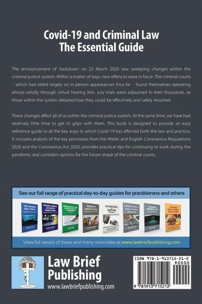 The announcement of ‘lockdown’ on 23 March 2020 saw sweeping changes within the criminal justice system. Within a matter of days, new offences were in force. The criminal courts – which had relied largely on in-person appearances thus far – found themselves operating almost wholly through virtual hearing lists. Jury trials were adjourned in their thousands, as those within the system debated how they could be effectively and safely resumed. These changes affect all of us within the criminal justice system. At the same time, we have had relatively little time to get to grips with them. This book is designed to provide an easy reference guide to all the key ways in which Covid-19 has affected both the law and practice. It includes analysis of the key provisions from the Welsh and English Coronavirus Regulations 2020 and the Coronavirus Act 2020, provides practical tips for continuing to work during the pandemic and considers options for the future shape of the criminal courts. The book is split into three main parts: The impact of Covid-19 on criminal offences: the new offences created, and the impact of the pandemic on existing offences; The impact of Covid-19 on the court system: virtual hearings, practical points for the practitioner and options to allow jury trials to resume. The impact of Covid-19 on Judicial decisions: sentencing and bail decisions. ABOUT THE AUTHOR Ramya Nagesh is a barrister at No5 Chambers, where she specialises in the full range of criminal matters. Ramya acts for both the Prosecution and the Defence, and represents both individuals and corporations. The vast majority of her criminal practice these days is in the Crown Court, but she also has experience in the Magistrates’ Courts, and in the Court of Appeal. Ramya sits as the independent legal representative on the West Midlands Hate Crime Scrutiny Panel. She is also a Trustee for Justice Is Now – a non-profit organisation seeking to make improvements to the ways in which sexual offences are treated in the criminal courts. Ramya is the author of the book: A Practical Guide to the Law in Relation to Hate Crime. She has also authored a number of articles on topics that include sleepwalking and the criminal law, international criminal law, hate crime and legal professional privilege.