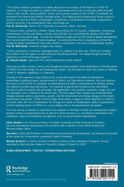This book provides a timely, critical, and thought-provoking analysis of the implications of the disruption of COVID-19 to the foreign aid and development system, and the extent to which the system is retaining a level of relevance, legitimacy or coherence.