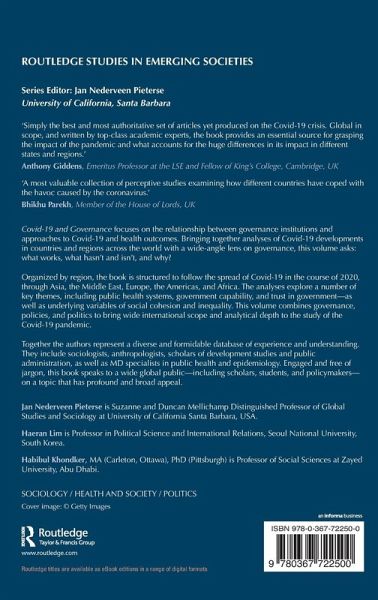 Covid-19 and Governance focuses on the relationship between governance institutions and approaches to Covid-19 and health outcomes. Bringing together analyses of Covid-19 developments in countries and regions across the world with a wide-angle lens on governance, this volume asks: what works, what hasn't and isn't, and why? Organized by region, the book is structured to follow the spread of Covid-19 in the course of 2020, through Asia, the Middle East, Europe, the Americas, and Africa. The analyses explore a number of key themes, including public health systems, government capability, and trust in government-as well as underlying variables of social cohesion and inequality. This volume combines governance, policies, and politics to bring wide international scope and analytical depth to the study of the Covid-19 pandemic. Together the authors represent a diverse and formidable database of experience and understanding. They include sociologists, anthropologists, scholars of development studies and public administration, as well as MD specialists in public health and epidemiology. Engaged and free of jargon, this book speaks to a wide global public-including scholars, students, and policymakers-on a topic that has profound and broad appeal.
