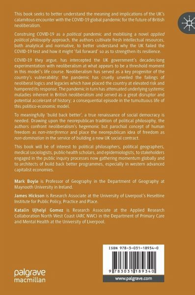 This book will be of interest to political philosophers, political geographers, medical sociologists, public-health scholars, and epidemiologists, to stakeholders engaged in the public inquiry processes now gathering momentum globally and to architects of build back better programmes, especially in western advanced capitalist economies.