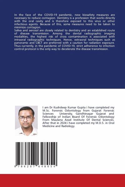 In the face of the COVID-19 pandemic, new biosafety measures are necessary to reduce contagion. Dentistry is a profession that works directly with the oral cavity and is therefore exposed to this virus or other infectious agents. Because of this, some measures need to be taken to minimize contagion. Saliva and aerosol are closely related to dentistry and an established route of disease transmission. Among the dental radiographic imaging modalities, the highest risk of cross contamination is associated with intraoral radiographic techniques. Hence, extraoral techniques such as panoramic and CBCT are preferred with a caution for radiation exposure. Thus currently, in the pandemic of COVID-19, strict adherence to infection control protocol is the only way to decelerate the disease transmission.