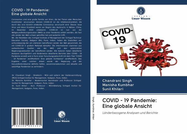 Coronaviren sind eine große Familie von Viren, die bei Tieren oder Menschen Krankheiten verursachen können. COVID-19 ist die Infektionskrankheit, die durch das erst kürzlich entdeckte Coronavirus verursacht wird. Dieses neue Virus und diese Krankheit waren vor Beginn des Ausbruchs in Wuhan, China, im Dezember 2019 unbekannt. COVID-19 ist nun von der Weltgesundheitsorganisation (WHO) zu einer Pandemie erklärt worden, die fast alle Länder der Welt schwer getroffen hat und weiterhin trifft. Wir, die Fakultäten des Sinhgad Institute of Management der Sinhgad Technical Education Society, Vadgaon (Bk), Pune, Indien, haben die Statistiken von achtundzwanzig der am stärksten betroffenen Länder der Welt gesammelt, die mit COVID-19 in großem Maßstab kämpfen. Die Informationen stammen aus authentischen Quellen wie der WHO und den autorisierten Regierungswebseiten der betroffenen Länder. Alle Autoren haben detaillierte Analysen durchgeführt und länderweise detaillierte Berichte über COVID - 19 Pandemie erstellt und in Form einer Forschungszeitschrift mit dem Titel "COVID - 19 Pandemie" veröffentlicht: Eine globale Sichtweise" veröffentlicht. Das Ergebnis einer solchen Arbeit würde der Regierung und der Gesundheitsindustrie definitiv helfen, zusammenzukommen und aktuelle und zukünftige Pandemien zu verhindern.