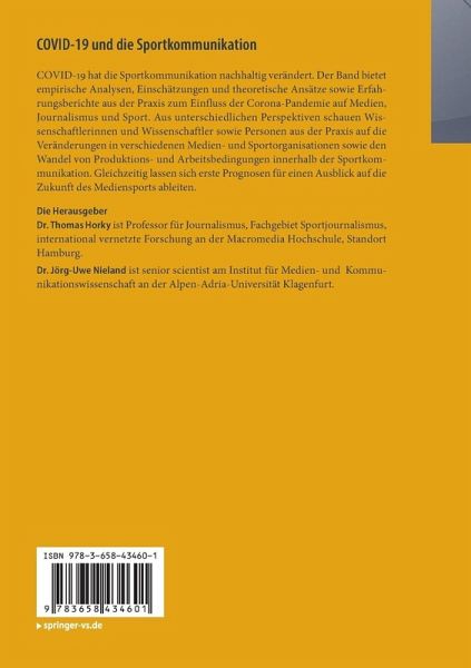 COVID-19 hat die Sportkommunikation nachhaltig verändert. Der Band bietet empirische Analysen, Einschätzungen und theoretische Ansätze sowie Erfahrungsberichte aus der Praxis zum Einfluss der Corona-Pandemie auf Medien, Journalismus und Sport. Aus unterschiedlichen Perspektiven schauen Wissenschaftlerinnen und Wissenschaftler sowie Personen aus der Praxis auf die Veränderungen in verschiedenen Medien- und Sportorganisationen sowie den Wandel von Produktions- und Arbeitsbedingungen innerhalb der Sportkommunikation. Gleichzeitig lassen sich erste Prognosen für einen Ausblick auf die Zukunft des Mediensports ableiten.