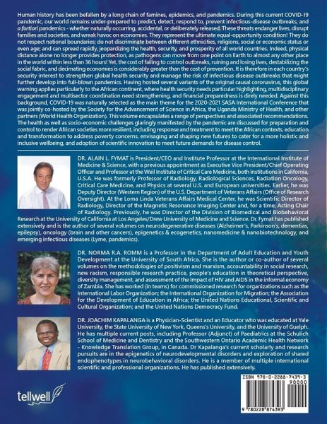 Human history has been befallen by a long chain of famines, epidemics, and pandemics. During this current COVID-19 pandemic, our world remains under-prepared to predict, detect, respond, prevent infectious disease outbreaks, and a fortiori pandemics-whether naturally occurring, accidental, or deliberately released. These threats endanger lives, disrupt families and societies, and wreak havoc on economies. They represent the ultimate equal opportunity condition! They do not respect national boundaries, do not discriminate between different ethnicities, religions, social or economic status or even age, and can spread rapidly, jeopardizing the health, security, and prosperity of all world countries. Indeed, physical distance alone no longer provides protection as pathogens can move from one point on Earth to almost any other place in the world within less than 36 hours! Yet, the cost of failing to control outbreaks, ruining and losing lives, destabilizing the social fabric, and decimating economies is considerably greater than the cost of prevention. It is therefore in each country's security interest to strengthen global health security and manage the risk of infectious disease outbreaks that might further develop into full-blown pandemics. Having hosted several variants of the original causal coronavirus, this global warning applies particularly to the African continent where health security needs particular highlighting, multidisciplinary engagement and multisector coordination need strengthening, and financial preparedness is direly needed. Against this background, COVID-19 was naturally selected as the main theme for the 2020-2021 SASA International Conference that was jointly co-hosted by the Society for the Advancement of Science in Africa, the Uganda Ministry of Health, and other partners (World Health Organization). This volume encapsulates a range of perspectives and associated recommendations. The health as well as socio-economic challenges glaringly manifested by the pandemic are discussed for preparation and control to render African societies more resilient, including response and treatment to meet the African contexts; education and transformation to address poverty concerns; envisaging and shaping new futures to cater for a more holistic and inclusive wellbeing; and adoption of scientific innovation to meet future demands for disease control.