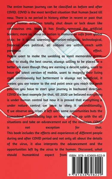 I am grateful to you for pick up this book. 2020 is the most alarming year for all the creatures of this nature. Millions of people affected by this virus directly or indirectly at the same time it also gave us few opportunities. From my bottom of my heart I wish you will find some of the opportunities after reading this book. This book is written out of my personal experiences as well as the experiences of people during the COVID. If we observe any crises it left with some opportunities buts the humankind responsibility lays on how we cop up with the all situations and take an advancement out of the recession. COVID is not exception for that. This book includes the effects and experiences of different people during and after COVID period and not only all about the details of the virus, it also interprets the advancement and the opportunities left by the virus to the human. Discussed, what should humankind expect from post coronavirus.