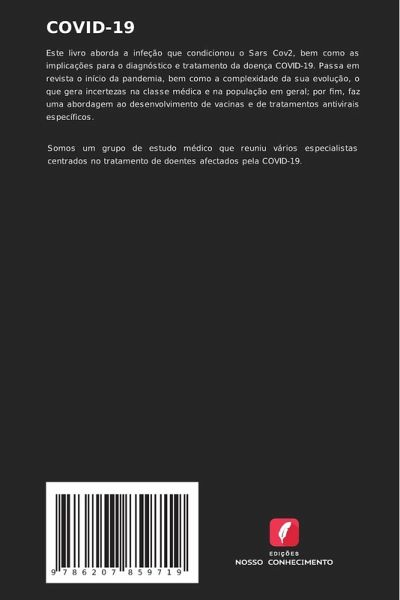 Este livro aborda a infeção que condicionou o Sars Cov2, bem como as implicações para o diagnóstico e tratamento da doença COVID-19. Passa em revista o início da pandemia, bem como a complexidade da sua evolução, o que gera incertezas na classe médica e na população em geral; por fim, faz uma abordagem ao desenvolvimento de vacinas e de tratamentos antivirais específicos.