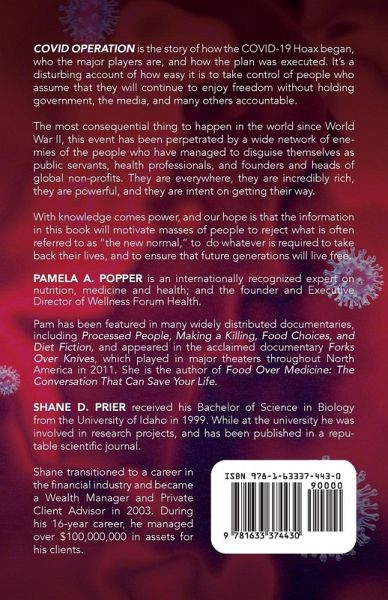 COVID Operation is the story of how the COVID-19 Hoax began, who the major players are, and how the plan was executed. It's a disturbing account of how easy it is to take control of people who assume that they will continue to enjoy freedom without holding government, the media, and many others accountable. The most consequential thing to happen in the world since World War II, this event has been perpetrated by a wide network of enemies of the people who have managed to disguise themselves as public servants, health professionals, and founders and heads of global non-profits. They are everywhere, they are incredibly rich, they are powerful, and they are intent on getting their way. With knowledge comes power, and our hope is that the information in this book will motivate masses of people to reject what is often referred to as "the new normal," to do whatever is required to take back their lives, and to ensure that future generations will live free.
