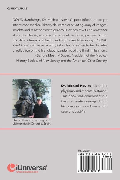 Each chapter in this brief compendium was prompted by something related to the COVID-19 pandemic which, in turn, led me to recall a subject often far removed from where I began. While digressing, I rejuvenated several oldies from my previous twelve books about medical history and added a few newbies. The titles of the last four of my books all included the word meanderings, but this time I've chosen to describe these essays as ramblings. I really don't know why the change. Perhaps COVID effects the brain. In fact, I'm sure it does and this rather disjointed collection is the evidence.