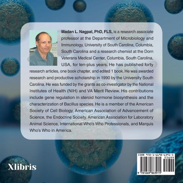 Madan L. Nagpal, PhD, FLS, is a research associate professor at the Department of Microbiology and Immunology, University of South Carolina, Columbia, South Carolina and a research chemist at the Dorn Veterans Medical Center, Columbia, South Carolina, USA, for ten-plus years. He has published forty research articles, one book chapter, and edited 1 book. He was awarded research and productive scholarship in 1990 by the University South Carolina. He was funded by the grants as co-investigator by the National Institutes of Health (NIH) and VA Merit Review. His contributions include gene regulation in steroid hormone biosynthesis and the characterization of Bacillus species. He is a member of the American Society of Cell Biology, American Association of Advancement of Science, the Endocrine Society, American Association for Laboratory Animal Science, International Who's Who Professionals, and Marquis Who's Who in America.