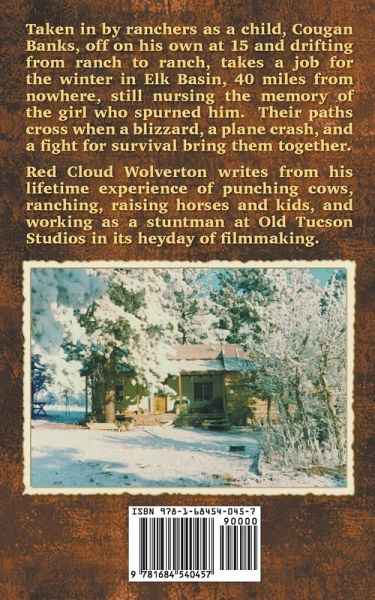 Taken in by ranchers as a child, Cougan Banks, off on his own at 15 and drifting from ranch to ranch, takes a job for the winter in Elk Basin, 40 miles from nowhere, still nursing the memory of the girl who spurned him. Their paths cross when a blizzard, a plane crash, and a fight for survival bring them together. Red Cloud Wolverton writes from his lifetime experience of punching cows, ranching, raising horses and kids, and working as a stuntman at Old Tucson Studios in its heyday of filmmaking.