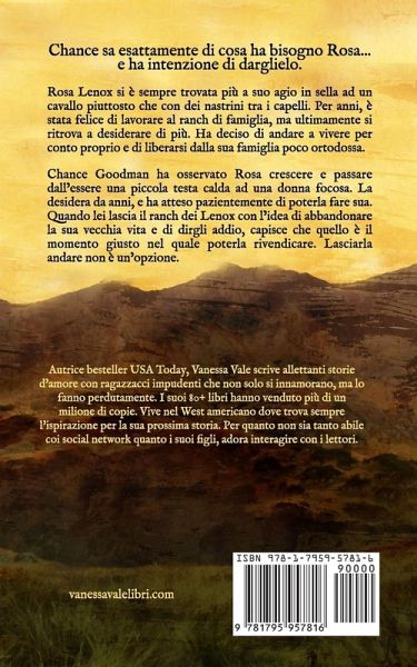 Territorio del Montana, 1885 - Chance sa esattamente di cosa ha bisogno Rosa... e ha intenzione di darglielo. Rosa Lenox si è sempre trovata più a suo agio in sella ad un cavallo piuttosto che con dei nastrini tra i capelli. Per anni, è stata felice di lavorare al ranch di famiglia, ma ultimamente si ritrova a desiderare di più. Ha deciso di andare a vivere per conto proprio e di liberarsi dalla sua famiglia poco ortodossa. Chance Goodman ha osservato Rosa crescere e passare dall'essere una piccola testa calda ad una donna focosa. La desidera da anni, e ha atteso pazientemente di poterla fare sua. Quando lei lascia il ranch dei Lenox con l'idea di abbandonare la sua vecchia vita e di dirgli addio, capisce che quello è il momento giusto nel quale poterla rivendicare. Lasciarla andare non è un'opzione. Attenzione: da sciogliere le mutande! Cowboy e Cavalcate è il primo libro della serie Cowboy del Ranch dei Lenox. È una storia d'amore selvaggiamente sporca con un'eroina focosa e un cowboy alfa ossessionato deciso a farla sua.