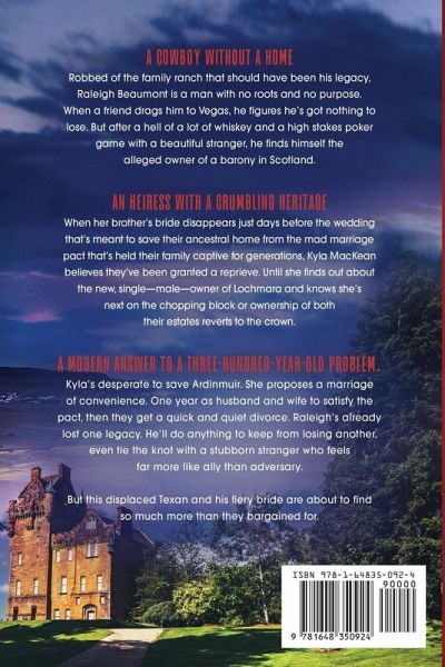 This is the large print edition of Cowboy in a Kilt. A cowboy without a home Robbed of the family ranch that should have been his legacy, Raleigh Beaumont is a man with no roots and no purpose. When a friend drags him to Vegas, he figures he's got nothing to lose. But after a hell of a lot of whiskey and a high stakes poker game with a beautiful stranger, he finds himself the alleged owner of a barony in Scotland. An heiress with a crumbling heritage When her brother's bride disappears just days before the wedding that's meant to save their ancestral home from the mad marriage pact that's held their family captive for generations, Kyla MacKean believes they've been granted a reprieve. Until she finds out about the new, single-male-owner of Lochmara and knows she's next on the chopping block or ownership of both their estates reverts to the crown. A modern answer to a three-hundred-year-old problem. Raleigh's lost his land once. He's not about to lose it again. Not even because of some lunatic pact made centuries before he was born. Kyla's desperate to save Ardinmuir. She agrees to marry him on one condition: They wed for one year to satisfy the pact, then get a quick and quiet divorce. There's no stipulation against it, and they'll both get what they want. But this displaced Texan and his fiery bride are about to find so much more than they bargained for.