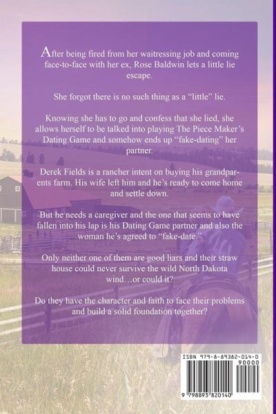 After being fired from her waitressing job and coming face-to-face with her ex, Rose Baldwin lets a little lie escape. She forgot there is no such thing as a "little" lie. Knowing she has to go and confess that she lied, she allows herself to be talked into playing The Piece Maker's Dating Game and somehow ends up "fake-dating" her partner. Derek Fields is a rancher intent on buying his grandparents farm. His wife left him and he's ready to come home and settle down. But he needs a caregiver and the one that seems to have fallen into his lap is his Dating Game partner and also the woman he's agreed to "fake-date." Only neither one of them are good liars and their straw house could never survive the wild North Dakota wind...or could it? Do they have the character and faith to face their problems and build a solid foundation together? Listen to Jay Dyess perform this book - and many of Jessie's other books - for FREE on YouTube HERE: https://www.youtube.com/SaywithJay Reviewers Say: ¿¿¿¿¿ "This is the very essence of clean and wholesome with strong Christian themes but also dealing with harsh realities." - Wren ¿¿¿¿¿ "I believe that I could honestly recommend any book by Jessie Gussman, even without reading it. All of her books are well written with wonderful characters and Christian principles. This is no exception." - Jill ¿¿¿¿¿ "Jessie has written a brilliant story about lying, confessing, being honest and always doing what is right in the eyes of God. I recommend this and all of Jessie's books to everyone who loves good, clean, Christian romances." - Carol ¿¿¿¿¿ "I love Jessie's books. They are down to earth with characters that are just like you and me. She has faith in her books, and we all could use a little of that every now and then... If you're looking for some small town family, friends, and where everyone knows your name... and your business, this is the book for you!" - DeedeeW ¿¿¿¿¿ "This story was just a wealth of thought provoking ideas along with an excellent story. There is so much rich depth in the pages the book is worth reading just for that alone." - Kindle Customer Books in the Coming Home to North Dakota Series:Cowboy Walking Away Cowboy Coming Home Cowboy Stealing My Heart Cowboy Finding Love Cowboy Dreaming Alone Cowboy Rescuing Me Cowboy Dancing All Night Cowboy Falling Hard Cowboy Looking at Me Cowboy Wanting Everything Cowboy Whispering My Name Cowboy Marrying the Lady