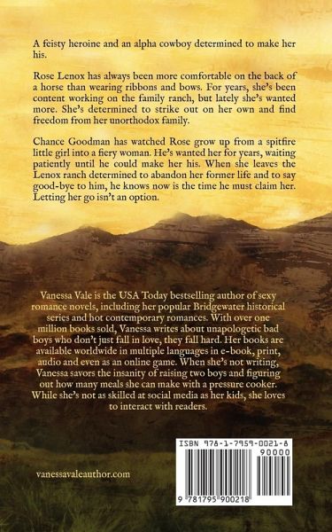 ¿¿¿¿¿ "I would love to get wrapped up in Chance's rope! WOW! What a cowboy!" A feisty heroine and an alpha cowboy determined to make her his. Rose Lenox has always been more comfortable on the back of a horse than wearing ribbons and bows. For years, she's been content working on the family ranch, but lately she's wanted more. She's determined to strike out on her own and find freedom from her unorthodox family. Chance Goodman has watched Rose grow up from a spitfire little girl into a fiery woman. He's wanted her for years, waiting patiently until he could make her his. When she leaves the Lenox ranch determined to abandon her former life and to say good-bye to him, he knows now is the time he must claim her. Letting her go isn't an option. This book was previously published as Rose in the Wildflower Brides series.