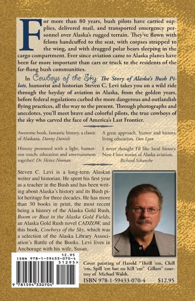 For more than 80 years, bush pilots have carried supplies, delivered mail, and transported emergency personnel over Alaska's rugged terrain. They've flown with felons handcuffed to the seat, with corpses strapped to the wing, and with drugged polar bears sleeping in the cargo compartment. Ever since aviation came to Alaska planes have been far more important than cars or truck to the residents of the far-flung bush communities. In Cowboys of the Sky: The Story of Alaska's Bush Pilots, humorist and historian Steve Levi takes you on a wild ride through the heyday of aviation in Alaska, from the golden years, before federal regulations curbed the more dangerous and outlandish flying practices, all the way to the present. Through photographs and anecdotes, you'll meet brave and colorful pilots, the true cowboys of the sky who carved the face of America's Last Frontier.