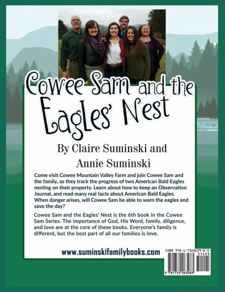 Come visit Cowee Mountain Valley Farm and join Cowee Sam and the family, as they track the progress of two American Bald Eagles nesting on their property. Learn about how to keep an Observation Journal, and read many real facts about American Bald Eagles. When danger arises, will Cowee Sam be able to warn the eagles and save the day?