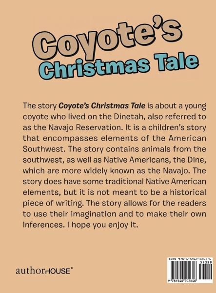 The story Coyote's Christmas Tale is about a young coyote who lived on the Dinetah, also referred to as the Navajo Reservation. It is a children's story that encompasses elements of the American Southwest. The story contains animals from the southwest, as well as Native Americans, the Dine, who are more widely known as the Navajo. The story does have some traditional Native American elements, but it is not meant to be a historical piece of writing. The story allows for the readers to use their imagination and to make their own inferences. I hope you enjoy it.