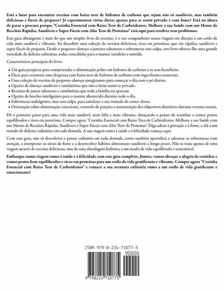 Está a lutar para encontrar receitas com baixo teor de hidratos de carbono que sejam não só saudáveis, mas também deliciosas e fáceis de preparar? Já experimentou várias dietas apenas para se sentir privado e com fome? Está na altura de parar a procura porque "Cozinha Essencial com Baixo Teor de Carboidratos: Melhore a sua Saúde com um Monte de Receitas Rápidas, Saudáveis e Super Fáceis com Alto Teor de Proteínas" está aqui para resolver seus problemas. Este guia abrangente é mais do que um simples livro de receitas; é o seu companheiro numa viagem em direção a um estilo de vida mais saudável e vibrante. Irá descobrir uma coleção de receitas deliciosas, ricas em proteínas, que são rápidas, saudáveis e super fáceis de preparar. Desde o pequeno-almoço a jantares saborosos e sobremesas sem culpa, este livro oferece-lhe uma grande variedade de delícias culinárias, todas concebidas para o manter satisfeito e nutrido. Características principais do livro:Um guia perspicaz para compreender a alimentação pobre em hidratos de carbono e os seus benefícios. Dicas para construir uma despensa com baixo teor de hidratos de carbono com ingredientes essenciais. Uma coleção de receitas de pequeno-almoço energizantes para começar o dia com o pé direito. Opções de almoço saudáveis e satisfatórias que não o farão sentir-se privado. Receitas de jantar saborosas e satisfatórias que toda a família irá apreciar. Opções de lanches inteligentes para o manter abastecido durante todo o dia. Sobremesas indulgentes, mas sem culpa, para satisfazer a sua vontade de comer doces. Orientação sobre alimentação consciente, controlo de porções e manutenção dos objectivos dietéticos durante eventos sociais. Dê o primeiro passo para uma vida mais saudável, mais feliz e mais vibrante, abraçando o prazer de cozinhar e comer pratos equilibrados e ricos em proteínas. Compre agora "Cozinha Essencial com Baixo Teor de Carboidratos: Melhore a sua Saúde com um Monte de Receitas Rápidas, Saudáveis e Super Fáceis com Alto Teor de Proteínas" Diga adeus à privação e à fome, e olá a um mundo de delícias culinárias em cada dentada. A sua viagem rumo à saúde e à felicidade começa aqui. Com este guia, não só descobrirá o prazer culinário em cada dentada, como também aprenderá a saborear as sobremesas com atenção, a interpretar os sinais de fome e a desenvolver hábitos alimentares saudáveis a longo prazo. Não se trata apenas de uma viagem através de receitas deliciosas, mas de uma abordagem holística a um modo de vida equilibrado e sustentável. Embarque numa viagem rumo à saúde e à felicidade com este guia completo. Juntos, vamos abraçar a alegria de cozinhar e comer pratos bem equilibrados e ricos em proteínas para um estilo de vida gratificante e vibrante. Compre agora "Cozinha Essencial com Baixo Teor de Carboidratos" e comece a sua aventura culinária rumo a um estilo de vida gratificante e emocionante!