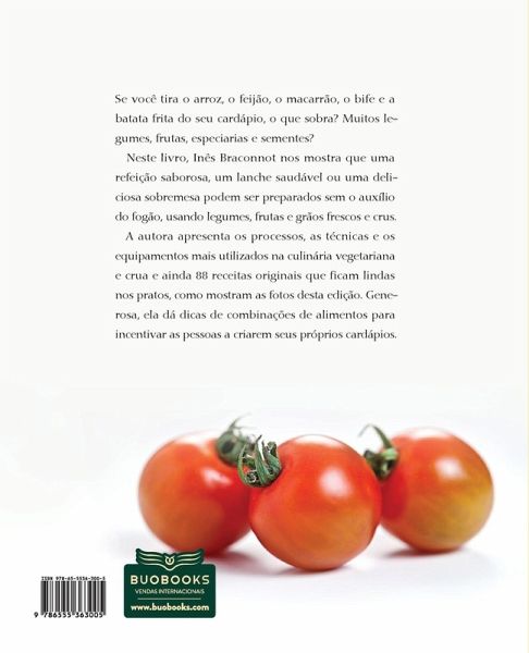 Resultado de 15 anos de experiência da food designer Inês Braconnot, este livro mostra a riqueza da culinária vegetariana e crua e a eleva ao patamar da gastronomia contemporânea. As 88 receitas ilustradas com belíssimas fotos vão surpreender o leitor: lasanha com girassol crocante, rolê de berinjela com centeio e brócolis, petit gâteau com recheio de damasco, shake de manga são algumas delas. A autora faz um breve histórico dessa cozinha, ensina os processos baseados em sementes germinadas, fermentados, desidratados, liquefeitos e amornados, apresenta os equipamentos necessários e ainda dá dicas de cardápios.