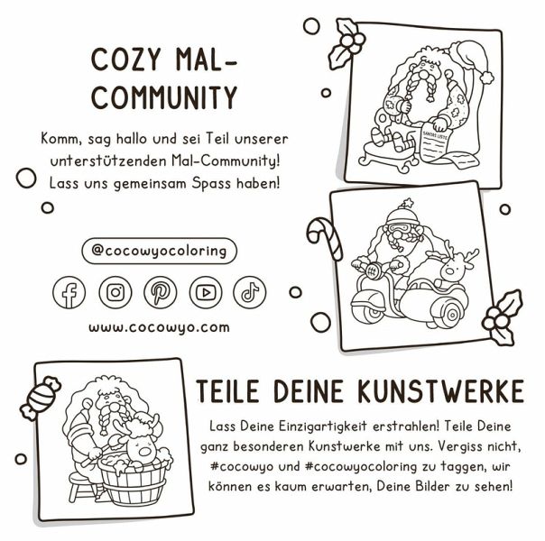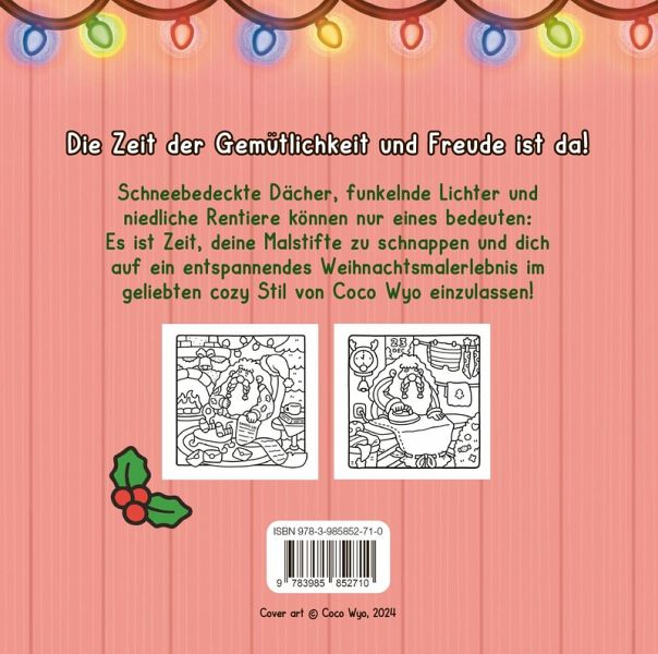 Kuschle dich ein und tauche mit deinen Lieblingsfarben und deiner flauschigsten Decke in Weihnachtswelten ab. Entdecke dieses brandneue Weihnachts-Malbuch von der Bestseller-TikTok-Sensation Coco Wyo. Das perfekte Weihnachtsgeschenk für alle, die ein wenig Entspannung brauchen!