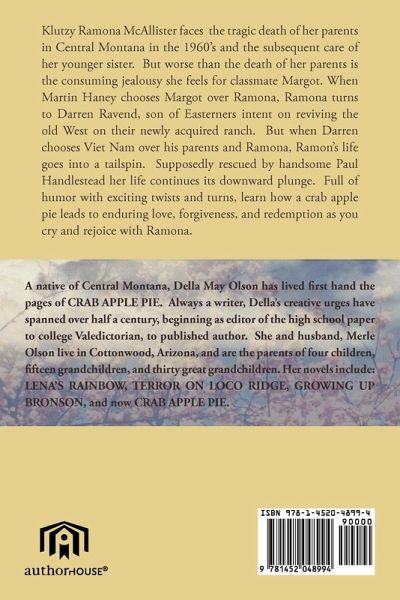 Klutzy Ramona McAllister faces the tragic death of her parents in Central Montana in the 1960's and the subsequent care of her younger sister. But worse than the death of her parents is the consuming jealousy she feels for classmate Margot.When Martin Haney chooses Margot over Ramona, Ramona turns to Darren Ravend, son of Easterners intent on reviving the old West on their newly acquired ranch. But when Darren chooses Viet Nam over his parents and Ramona, Ramon's life goes into a tailspin. Supposedly rescued by handsome Paul Handlestead her life continues its downward plunge. Full of humor with exciting twists and turns, learn how a crab apple pie leads to enduring love, forgiveness, and redemption as you cry and rejoice with Ramona.