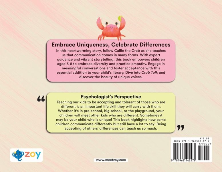 Discover the magic of unique communication with Callie, the Crab, in Crab Talk. Celebrate differences, one clatter at a time!