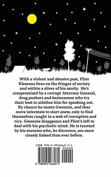 With a violent and abusive past, Flint Klemens lives on the fringes of society and within a sliver of his sanity. He’s compromised by a corrupt Attorney General, drug pushers and businessmen who try their best to sideline him for speaking out. By chance he meets Gwennie, and they move interstate to start anew, only to find themselves caught in a web of corruption and vice. Gwennie disappears and Flint’s left to deal with his psychotic mind. He is taunted by his enemies who, he discovers, are more closely linked than ever before. Artwork and illustrations by Paul Summerfield. Foreword by Ernest Hunter