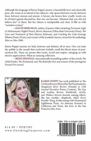 Karen Poppy has work published in numerous literary journals, magazines, and anthologies. Her poetry chapbook, Crack Open/Emergency, is published by Finishing Line Press (2020). Her chapbook, Every Possible Thing, is published by Homestead Lighthouse Press (2020). An attorney licensed in California and Texas, Karen Poppy lives in the San Francisco Bay Area.