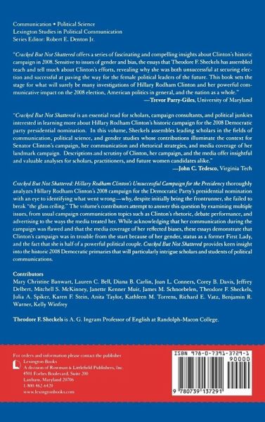 Cracked But Not Shattered thoroughly analyzes Hillary Clinton's 2008 campaign for the Democratic Party's presidential nomination with an eye to identifying what went wrong-why, the frontrunner, she ended up not breaking "the glass ceiling." Although her communication was flawed and the media coverage of her did reflect biases, these essays demonstrate how her campaign was in trouble from the start because of her gender, status as a former First Lady, and being half of a political couple.