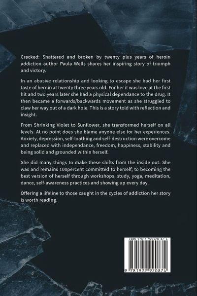 Cracked: Shattered and broken by twenty plus years of heroin addiction author Paula Wells shares her inspiring story of triumph and victory. In an abusive relationship and looking to escape she had her first taste of heroin at twenty three years old. For her it was love at the first hit and two years later she had a physical dependance to the drug. It then became a forwards/backwards movement as she struggled to claw her way out of a dark hole. This is a story told with reflection and insight. From Shrinking Violet to Sunflower, she transformed herself on all levels. At no point does she blame anyone else for her experiences. Anxiety, depression, self-loathing and self-destruction were overcome and replaced with independance, freedom, happiness, stability and being solid and grounded within herself. She did many things to make these shifts from the inside out. She was and remains 100 percent committed to herself, to becoming the best version of herself through workshops, study, yoga, meditation, dance, self-awareness practices and showing up every day. Offering a lifeline to those caught in the cycles of addiction her story is worth reading.