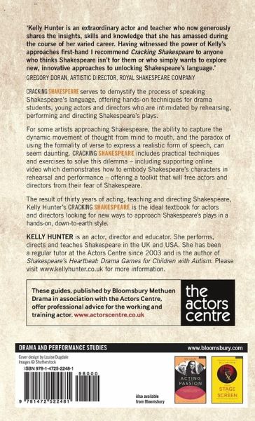 Cracking Shakespeare serves to demystify the process of speaking Shakespeare's language, offering hands-on techniques for drama students, young actors and directors who are intimidated by rehearsing, performing and directing Shakespeare's plays. For some artists approaching Shakespeare, the ability to capture the dynamic movement of thought from mind to mouth, and the paradox of using the formality of verse to express a realistic form of speech, can seem daunting. Cracking Shakespeare includes practical techniques and exercises to solve this dilemma - including supporting online video which demonstrate how to embody Shakespeare's characters in rehearsal and performance - offering a toolkit that will free actors and directors from their fear of Shakespeare. The result of thirty years of acting, teaching and directing Shakespeare, Kelly Hunter's Cracking Shakespeare is the ideal textbook for actors and directors looking for new ways to approach Shakespeare's plays in a hands-on, down-to-earth style.