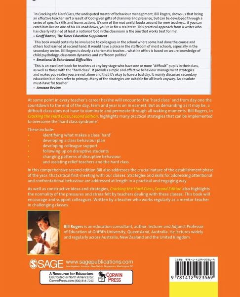 At some point in every teacher's career he/she will encounter the `hard class' and from day one the countdown to the end of the day, term and year is on in earnest. But as demanding as it may be, a difficult class does not have to dominate and permeate through all waking moments. Bill Rogers, in Cracking the Hard Class, Second Edition, highlights many practical strategies that can be implemented to overcome the hard class syndrome. These include: identifying what makes a class `hard'; developing a class behaviour plan; developing colleague support; following up on disruptive students; changing patterns of bad behaviour; and assisting relief teachers and the hard class.