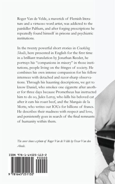 Roger Van de Velde, a maverick of Flemish literature and a virtuoso word artist, was addicted to the painkiller Palfium, and after forging prescriptions he repeatedly found himself in prisons and psychiatric institutions. In the twenty powerful short stories in Crackling Skulls, here presented in English for the first time in a brilliant translation by Jonathan Reeder, he portrays his "companions in misery" in those institutions, people living on the fringes of society. He combines his own intense compassion for his fellow internees with detached and razor-sharp observations. Through his haunting descriptions, we get to know Daniel, who smokes one cigarette after another for three days because Prometheus has instructed him to do so, Jules Leroy, who kills his beloved cat after it eats his roast beef, and the Marquis de la Motte, who writes out IOUs for billions of francs. He describes their madness with respect and love, and persistently goes in search of the final remnants of humanity within them.