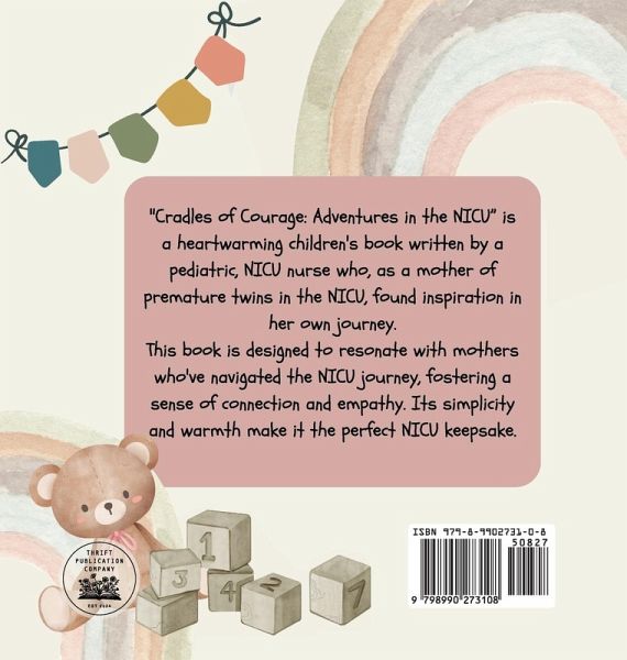 "Cradles of Courage: Adventures in the NICU" is a heartwarming children's book written by a pediatric nurse who, as a mother of premature twins in the NICU, found inspiration in her own journey. This book is designed to resonate with mothers who've navigated the NICU journey, fostering a sense of connection and empathy. Its simplicity and warmth make it the perfect NICU keepsake.