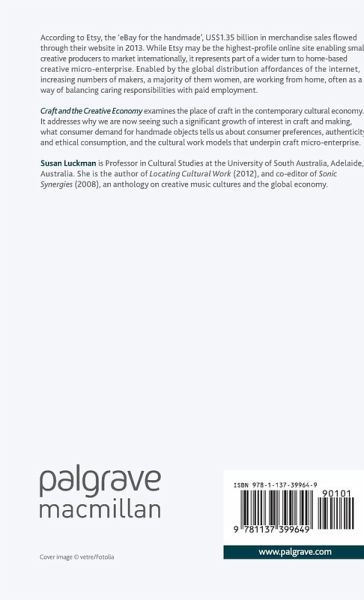 Craft and the Creative Economy examines the place of craft and making in the contemporary cultural economy, with a distinctive focus on the ways in which this creative sector is growing exponentially as a result of online shopfronts and home-based micro-enterprise, 'mumpreneurialism' and downshifting, and renewed demand for the handmade.