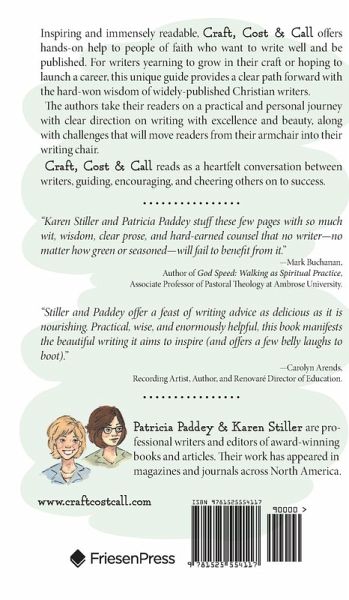 Inspiring and immensely readable, Craft, Cost & Call offers hands-on help to people of faith who want to write well and understand what it takes to be published. For writers yearning to grow in their craft or hoping to launch a writing career, this unique guidebook provides a clear path forward filled with the hard-won wisdom of long-time and widely-published Christian writers. From the beauty of the call to write and insights on how to be published, the authors take their readers on a journey both practical and personal. Readers will find clear direction on writing with excellence and beauty, and "Try this" challenges that will move any aspiring writer out of their armchair and into their writing chair. Far from a manual, Craft, Cost & Call reads as a heartfelt conversation between writers, guiding, encouraging, and cheering others on to success.
