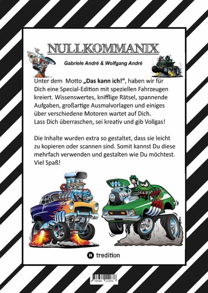 Das Craftbook - Band 64, "Nullkommanix", ist eine Special-Edition mit großartigen Fahrzeugen des Motorsports. Liebevolle, interessante, schnelle und witzige Fahrzeuge wurden als Ausmalmotive kreiert. Es ist für alle Kinder ab dem Vorschulalter, Volksschüler und Jugendliche besonders geeignet, die Spaß daran haben, knifflige Rätsel zu lösen, zu basteln, zu malen und Motivationsübungen gerne ausführen. Die gesamte Craftbook for Kids - Bandreihe, ist als unterstützende sowie ausgleichende Unterhaltungs- und Lernlektüre für Kinder und Jugendliche gedacht, um analoge Tätigkeiten in Kombination mit digitalen Hilfsmitteln, allein oder mit ihren Liebsten, auszuführen. Die besonders gestalteten Inhalte vermitteln Freude beim Lernen und Lösen der gestellten Aufgaben. Gleichzeitig werden die kognitiven Fähigkeiten, die Motorik des Zeichnens und das Konzentrationsvermögen geschärft. Die Craftbooks haben einen enormen Unterhaltungswert. Man findet Spiele darin, die nicht im Handel erhältlich sind. Der Mehrwert besteht darin, dass man zu Ideen und Kreativität inspiriert wird. Der soziale Aspekt, etwas analog zu tun, ist ebenso nicht zu verachten. Auch wird die kommunikative Ebene ausgeschöpft und gefordert. Ebenso wird die Interessen- und Ideenfindung sowie die Fantasie angeregt. Außerdem erlernt man in manchen Bereichen eine gewünschte Teamfähigkeit bei der Ausführung von gewissen Aufgaben. Der Inhalt zeigt den Facettenreichtum auf, mit dem man sich beim Lernen kreativ entwickeln kann. Kinder sollen mit den verschiedenen und unterschiedlichsten Themen zur Ideenentwicklung angeregt werden. Unsere Craftbook-Bandreihe unterstützt das Lernen und die Entwicklung wichtiger Fähigkeiten wie Lesen, Schreiben, Rechnen und kreatives Denken. Eltern können gemeinsam mit ihren Kindern an den Aufgaben arbeiten, was die Bindung stärkt, Bildung schafft und wertvolle gemeinsame Zeit beinhaltet. Gemeinsam seid Ihr stark und verbringt eine wunderbare Zeit.