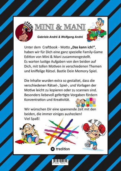 Das Craftbook - Band 62, "Family Time", ist eine Special-Edition mit Mini & Mani. Die witzigen Aufgaben und spannenden Rätseln, werden die ganze Familie begeistern. Liebevolle, interessante Themen wurden als Ausmalmotive kreiert. Es ist für alle Kinder ab dem Vorschulalter, Volksschüler und Jugendliche besonders geeignet, die Spaß daran haben, knifflige Rätsel zu lösen, zu basteln, zu malen und Motivationsübungen gerne ausführen. Die gesamte Craftbook for Kids - Bandreihe ist als unterstützende sowie ausgleichende Unterhaltungs- und Lernlektüre für Kinder und Jugendliche gedacht, um analoge Tätigkeiten in Kombination mit digitalen Hilfsmitteln, allein oder mit den Liebsten, auszuführen. Die besonders gestalteten Inhalte vermitteln Freude beim Lernen und Lösen der gestellten Aufgaben. Gleichzeitig werden die kognitiven Fähigkeiten, die Motorik des Zeichnens und das Konzentrationsvermögen geschärft. Die Craftbooks haben einen enormen Unterhaltungswert. Man findet Spiele darin, die nicht im Handel erhältlich sind. Der Mehrwert besteht darin, dass man zu Ideen und Kreativität inspiriert wird. Der soziale Aspekt, etwas analog zu tun, ist ebenso nicht zu verachten. Auch wird die kommunikative Ebene ausgeschöpft und gefordert. Ebenso wird die Interessen- und Ideenfindung sowie die Fantasie angeregt. Außerdem erlernt man in manchen Bereichen eine gewünschte Teamfähigkeit bei der Ausführung von gewissen Aufgaben. Der Inhalt zeigt den Facettenreichtum auf, mit dem man sich beim Lernen kreativ entwickeln kann. Kinder sollen mit den verschiedenen und unterschiedlichsten Themen zur Ideenentwicklung angeregt werden. Unsere Craftbook-Bandreihe unterstützt das Lernen und die Entwicklung wichtiger Fähigkeiten wie Lesen, Schreiben, Rechnen und kreatives Denken. Eltern können gemeinsam mit ihren Kindern an den Aufgaben arbeiten, was die Bindung stärkt, Bildung schafft und wertvolle gemeinsame Zeit beinhaltet. Gemeinsam seid Ihr stark und verbringt eine wunderbare Zeit.