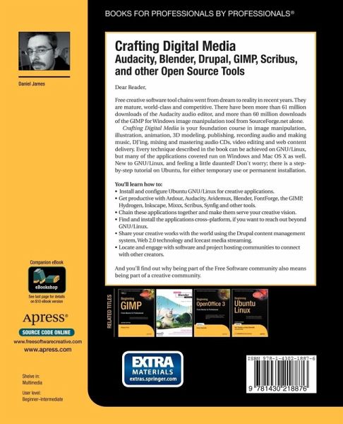 Crafting Digital Media is your foundation course in photographic manipulation, illustration, animation, 3D modelling, publishing, recording audio and making music, DJ'ing, mixing and mastering audio CDs, video editing and web content delivery. Every technique described in the book can be achieved on GNU/Linux, but many of the applications covered run on Windows and Mac OS X as well. New to GNU/Linux and a little daunted? Don't worry-there's a step-by-step tutorial on Ubuntu for either temporary use or permanent installation.