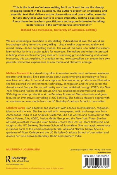 We are witnessing a revolution in storytelling. Publications all over the world are increasingly using immersive storytelling-virtual reality, augmented reality and mixed reality-to tell compelling stories. The aim of this book is to distill the lessons learned thus far into a useful guide for reporters, filmmakers and writers interested in telling stories in this emerging medium. Examining ground-breaking work across industries, this text explains, in practical terms, how storytellers can create their own powerful immersive experiences as new media and platforms emerge.
