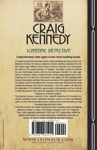 Craig Kennedy rides again in two more exciting books In Craig Kennedy the American nation might justifiably lay claim to their own Sherlock Holmes, for here is a detective whose activities projected him into the modern age. Where Conan Doyle's famous character of a more gentle era relied on his superb powers of analysis, Kennedy is able to combine his own intellectual powers with the technological marvels of a new age. Arthur B. Reeve's classic 'Craig Kennedy' stories began appearing in 1910, ensuring him of a place as a dominant crime fighter for the emerging 20th century. Kennedy is perhaps the natural evolution of the 'great detective' and the reader cannot but imagine that Holmes would have embraced his newly created techniques with equal enthusiasm. Here the reader will discover the application of lie detectors, gyroscopes, seismographs and an arsenal of other equipment, both real and imagined, to the solving of crimes and the bringing of criminals to justice. This special Leonaur collection of the 'scientific' detective of Columbia University comprises seven substantial volumes, each in a colour coordinated cover. Leonaur editions are newly typeset and are not facsimiles; each title is available in softcover and hardback with dustjacket, so this may be the ideal way to collect and own the marvellous Craig Kennedy detective story series. In the fifth volume, the reader will find two more complete books of intriguing detective stories to enjoy-The Social Gangster and The Treasure-Train, both originally published in 1916 and 1917 respectively. Within its pages enthusiasts can puzzle over many a dastardly crime and, of course, an equal number of brilliantly deduced solutions.