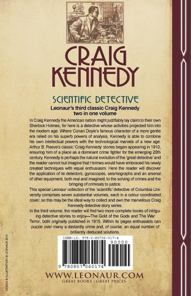 Leonaur's third classic Craig Kennedy two in one volume In Craig Kennedy the American nation might justifiably lay claim to their own Sherlock Holmes, for here is a detective whose activities projected him into the modern age. Where Conan Doyle's famous character of a more gentle era relied on his superb powers of analysis, Kennedy is able to combine his own intellectual powers with the technological marvels of a new age. Arthur B. Reeve's classic 'Craig Kennedy' stories began appearing in 1910, ensuring him of a place as a dominant crime fighter for the emerging 20th century. Kennedy is perhaps the natural evolution of the 'great detective' and the reader cannot but imagine that Holmes would have embraced his newly created techniques with equal enthusiasm. Here the reader will discover the application of lie detectors, gyroscopes, seismographs and an arsenal of other equipment, both real and imagined, to the solving of crimes and the bringing of criminals to justice. This special Leonaur collection of the 'scientific' detective of Columbia University comprises seven substantial volumes, each in a colour coordinated cover. Leonaur editions are newly typeset and are not facsimiles; each title is available in softcover and hardback with dustjacket, so this may be the ideal way to collect and own the marvellous Craig Kennedy detective story series. In the third volume, the reader will find two more complete books of intriguing detective stories to enjoy-The Gold of the Gods and The War Terror, both originally published in 1915. Within its pages enthusiasts can puzzle over many a dastardly crime and, of course, an equal number of brilliantly deduced solutions.