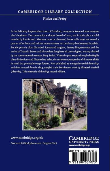 In the delicately impoverished town of Cranford, everyone is keen to know everyone else's business. The community is almost devoid of men, and in their place a solid matriarchy has formed. Manners must be observed, house calls must not exceed a quarter of an hour, and neither money matters nor death may be discussed in public. But the peace is often disturbed. Rumoured burglars, literary disagreements, and the arrival of Captain Brown and his tactless daughters all cause ripples, warmly charted by the conversational narrator, Mary Smith. When the past erupts through the fragile class distinctions and disputed tea sales, the customary perspective of the town shifts in small but perceptible ways forever. First published as a magazine serial from 1851 and then in novel form in 1853, Cranford is the best-known work by Elizabeth Gaskell (1810-65). This reissue is of the 1853 second edition.