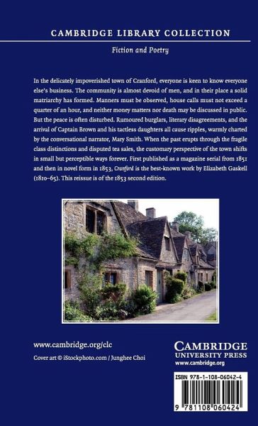 In the delicately impoverished town of Cranford, everyone is keen to know everyone else's business. The community is almost devoid of men, and in their place a solid matriarchy has formed. Manners must be observed, house calls must not exceed a quarter of an hour, and neither money matters nor death may be discussed in public. But the peace is often disturbed. Rumoured burglars, literary disagreements, and the arrival of Captain Brown and his tactless daughters all cause ripples, warmly charted by the conversational narrator, Mary Smith. When the past erupts through the fragile class distinctions and disputed tea sales, the customary perspective of the town shifts in small but perceptible ways forever. First published as a magazine serial from 1851 and then in novel form in 1853, Cranford is the best-known work by Elizabeth Gaskell (1810-65). This reissue is of the 1853 second edition.