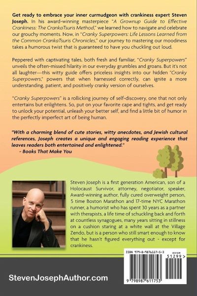 Get ready to embrace your inner curmudgeon with crankiness expert Steven Joseph. In his award-winning masterpiece "A Grownup Guide to Effective Crankiness: The CrankaTsuris Method," we learned how to navigate and celebrate our grouchy moments. Now, in "Cranky Superpowers: Life Lessons Learned from the Common CrankaTsuris Chronicles," our journey to mastering our moodiness takes a humorous twist that is guaranteed to have you chuckling out loud. Peppered with captivating tales, both fresh and familiar, "Cranky Superpowers" unveils the often-missed hilarity in our everyday grumbles and groans. But it's not all laughter-this witty guide offers priceless insights into our hidden "Cranky Superpowers," powers that when harnessed correctly, can ignite a more understanding, patient, and positively cranky version of ourselves. "Cranky Superpowers" is a rollicking journey of self-discovery, one that not only entertains but enlightens. So, put on your favorite cape and tights, and get ready to unlock your potential, unleash your better self, and find a little bit of humor in the perfectly imperfect art of being human.