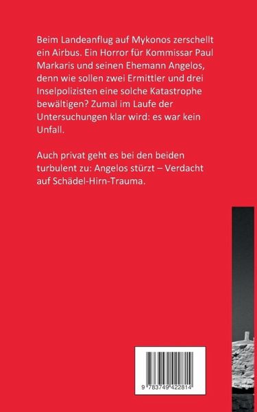 Beim Landeanflug auf Mykonos zerschellt ein Airbus. Ein Horror für Kommissar Paul Markaris und seinen Ehemann Angelos, denn wie sollen zwei Ermittler und drei Inselpolizisten eine solche Katastrophe bewältigen? Zumal im Laufe der Untersuchungen klar wird: es war kein Unfall.Auch privat geht es bei den beiden turbulent zu: Angelos stürzt: Verdacht auf Schädel-Hirn-Trauma.