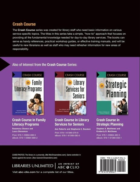 Video games aren't just for kids anymore. This book will describe the "why" and "how" to start or expand a video gaming program in the library, including some specific examples of how to target adult and female gamer patrons. Gaming supplies more than just visual stimulation and empty entertainment; it can also promote socialization as well as the learning of both traditional and new literacies required to succeed in the modern world. Problem-solving, multi-tasking, complex decision-making on the fly, and "reading" the combination of words and graphics are vital skills for the 21st century-all of which are required to play video games. Crash Course in Gaming discusses the pros and cons of gaming, the types of games and game systems, circulating collections, and game programs. It explains how a library's video game program can-and should-do much more than simply draw younger users to the library, providing examples of how everyone from parents to senior citizens can benefit from a patron-oriented computer gaming program. The appendices also include specific games, programs, review sources, and sources for further information.